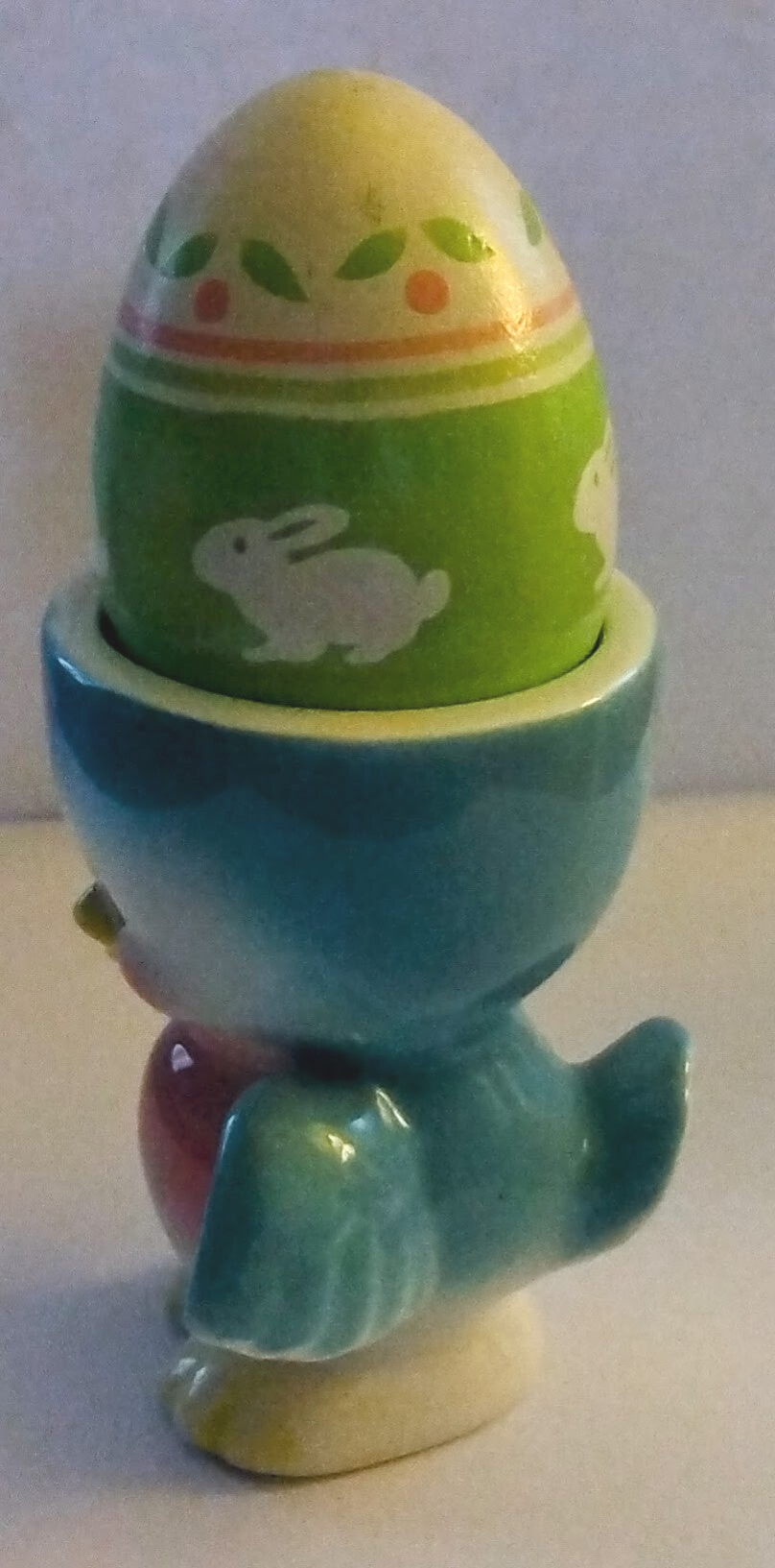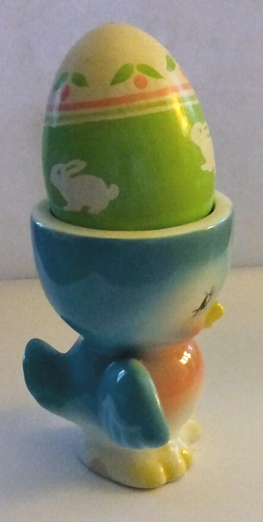 Vintage Bluebird Kitsch Egg Cup with Bunny Egg