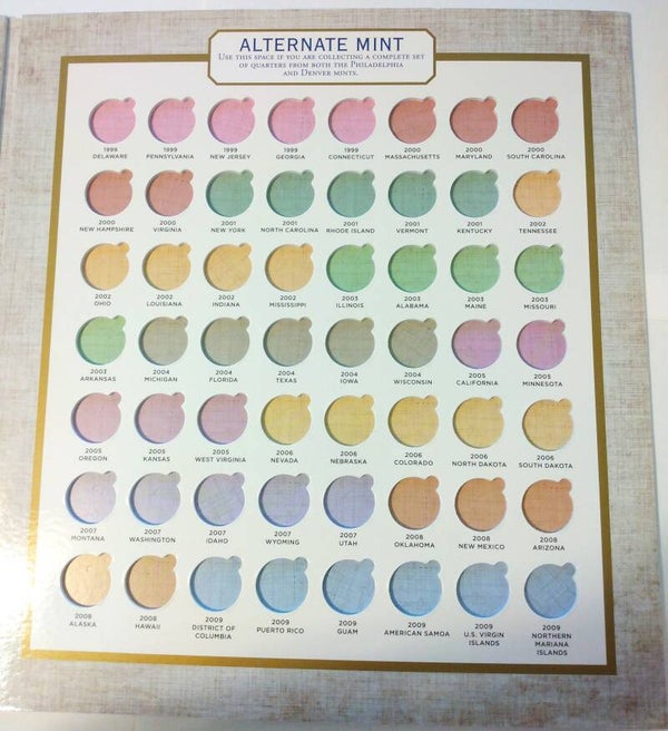 The Peter Pauper Press 50 State Commemorative State Quarters Collector’s Map is a colorful and durable fold-out map designed for the complete U.S. Mint State Quarters Program. It holds all 112 quarters issued from 1999–2009, including coins from both the Philadelphia (P) and Denver (D) mints. This collector’s map features slots for all 50 states, plus the District of Columbia and U.S. Territories (Puerto Rico, Guam, American Samoa, U.S. Virgin Islands, and Northern Mariana Islands). With vivid artwork, state facts, and organized labeled spaces, it’s perfect for hobbyists, families, and coin collectors of all ages. A fun, educational, and lasting way to celebrate America’s history and geography through its coins.