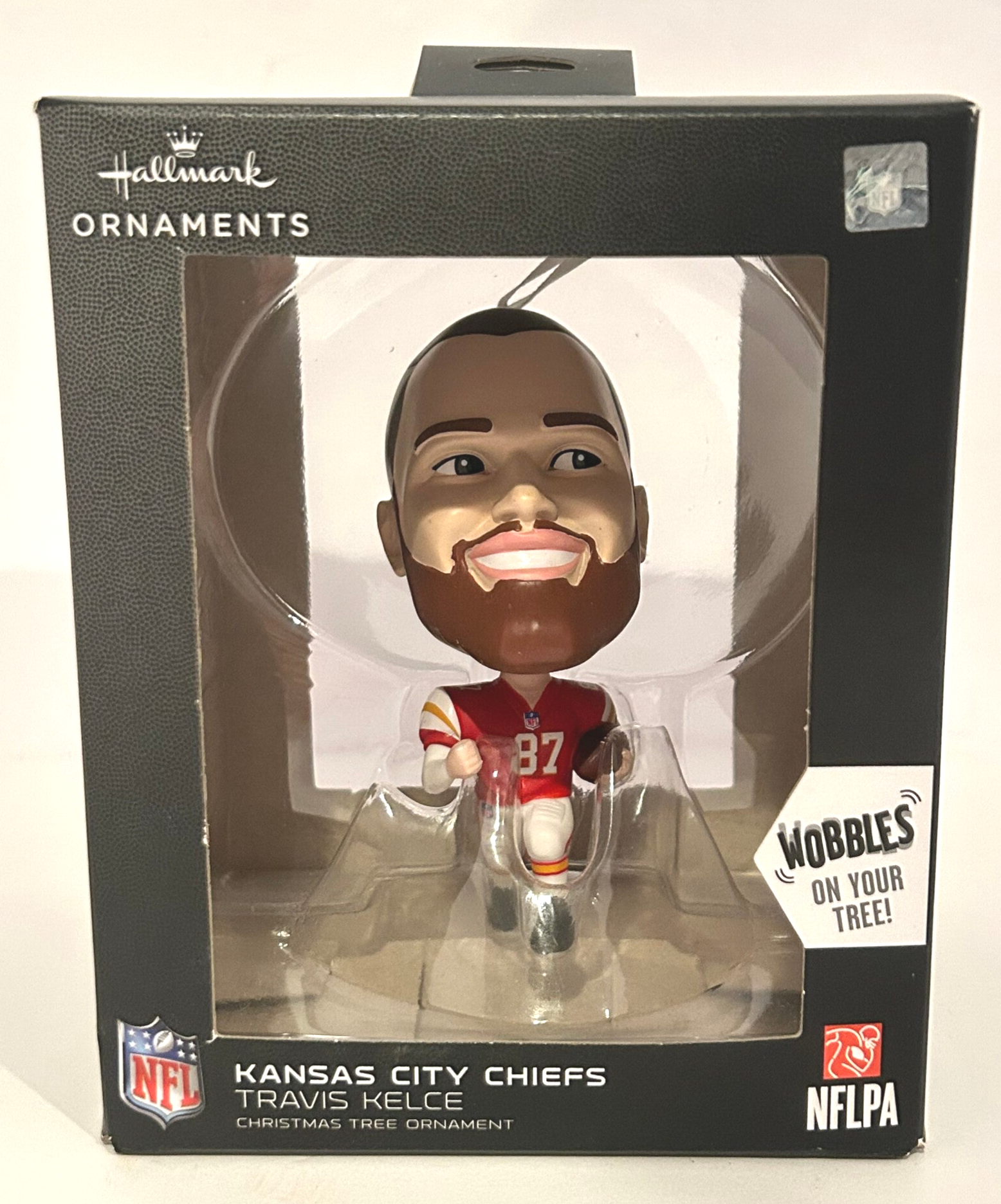 Celebrate Kansas City Chiefs superstar Travis Kelce with the 2022 Hallmark NFL Ornament — a must-have for fans and collectors alike. This officially licensed Hallmark Keepsake captures the dynamic tight end in action, honoring one of the most dominant players in Chiefs history. Perfect for displaying team pride on your Christmas tree or in your memorabilia collection, this ornament continues Hallmark’s long tradition of commemorating football’s biggest stars. A great gift for any Chiefs or NFL fan!