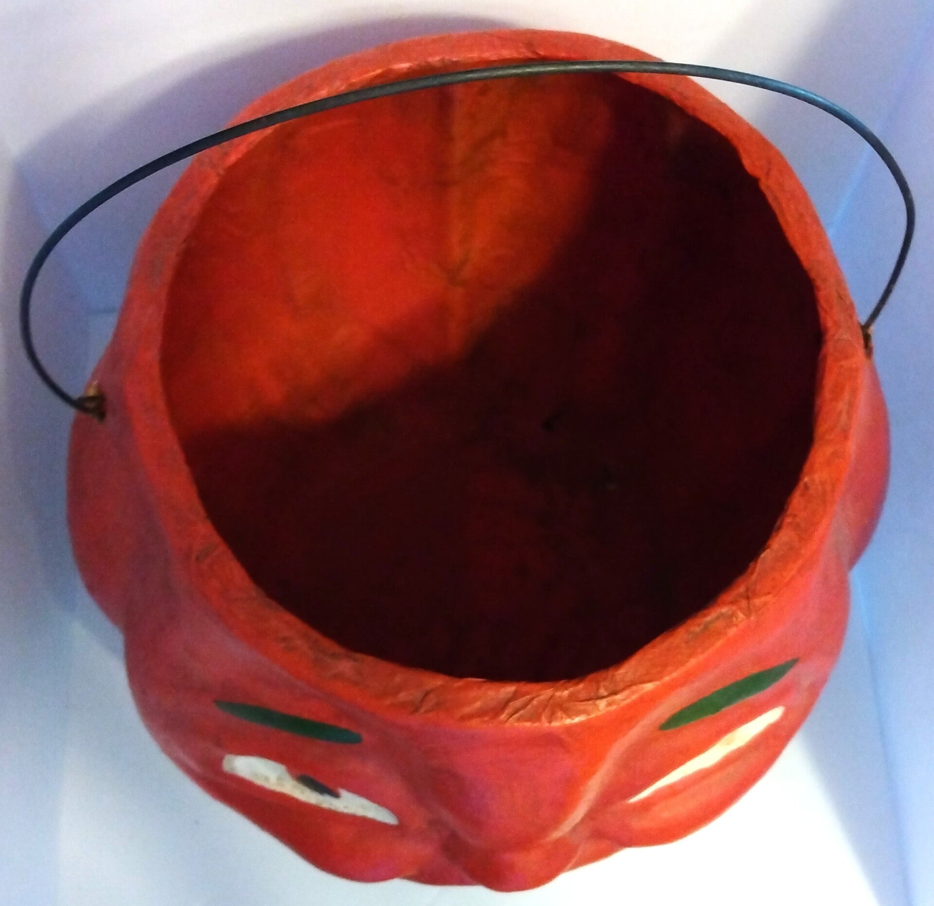 Vintage plastic jack-o’-lantern candy bucket with handle