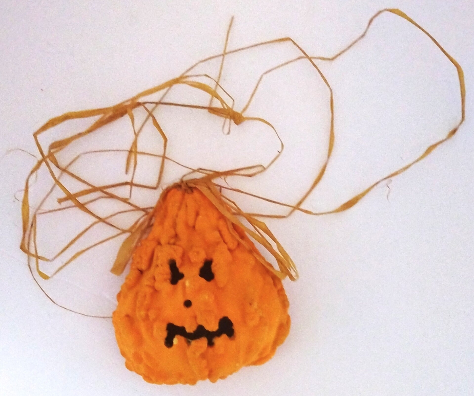 Handmade Halloween Gourd Jack-O’-Lantern Ornament | Rustic Folk Art Pumpkin Décor