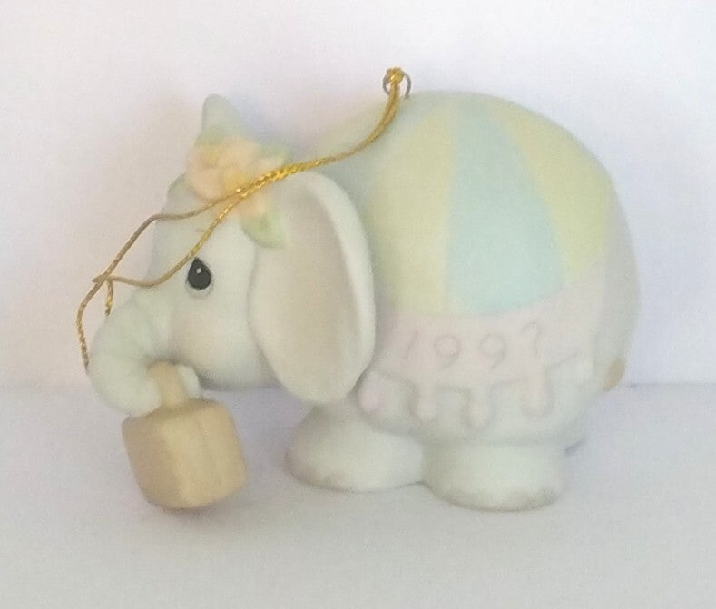 Celebrate the magic of the season with the Precious Moments “Pack Your Trunk for the Holidays” 1997 Annual Edition ornament by Enesco. This delightful porcelain piece features an adorable elephant ready for holiday travels, symbolizing warmth, joy, and togetherness during Christmastime.